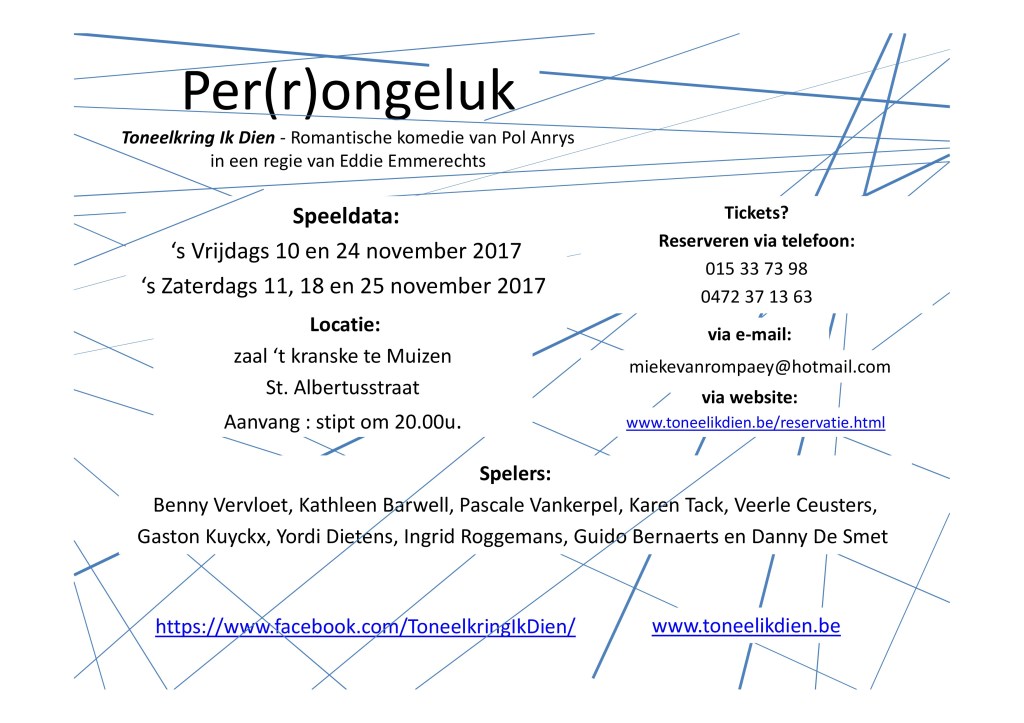 Media De flat van Jet (2025) Fluffy neemt de leiding (2024) Jezus, Maria, Jozef (2024) Spotgeesten (2023) Van de brug af gezien (2023) Instappen a.u.b! (2022) Viering Mieke & Geert (2022) Het laatste glas (2018) Perrongeluk Vind-ik-leuk Aan het laden...